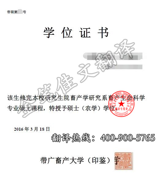 学位证书,又称学位证,是为了证明学生专业知识和技术水平而授予的证书,在我国学位证授予资格单位为通过教育部承认的高等院校或科学研究机构。目前我国学位分为三类:学士学位,硕士学位,博士学位。其中,学士学位里还包括第二学士学位,统称学士学位。学位证翻译定义在一定的知识、文学领域取得一定水平后颁发的专业证书及学位证,学位证书。经在高等学校或科学研究部门学习和研究,成绩达到有关规定,由有关部门授与并得到国家社会承认的专业知识学习资历。而翻译公司针对这一证书进行翻译的过程就称为学位证翻译,目前市场上主要的学位证翻译根据用途大致分为两种。